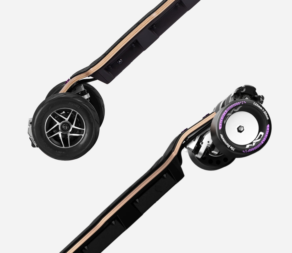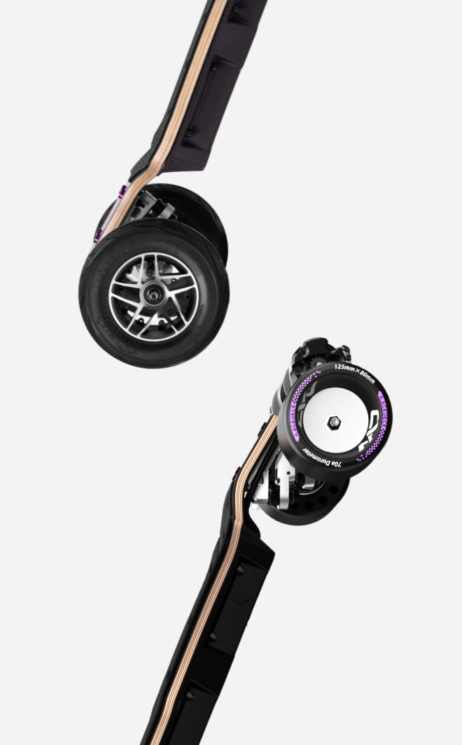 Stunning. It runs in the family. The All-New N1 VIOLET-AT Gear Drive board features the latest Element 4.0 helical gear system,same as N3 and Z3. Acedeck is the first brand in the electric skateboard industry to independently develop, apply, and mass-produce a high-precision helical gear drive solution.This results in smoother performance, higher transmission efficiency, and significantly reduced noise.