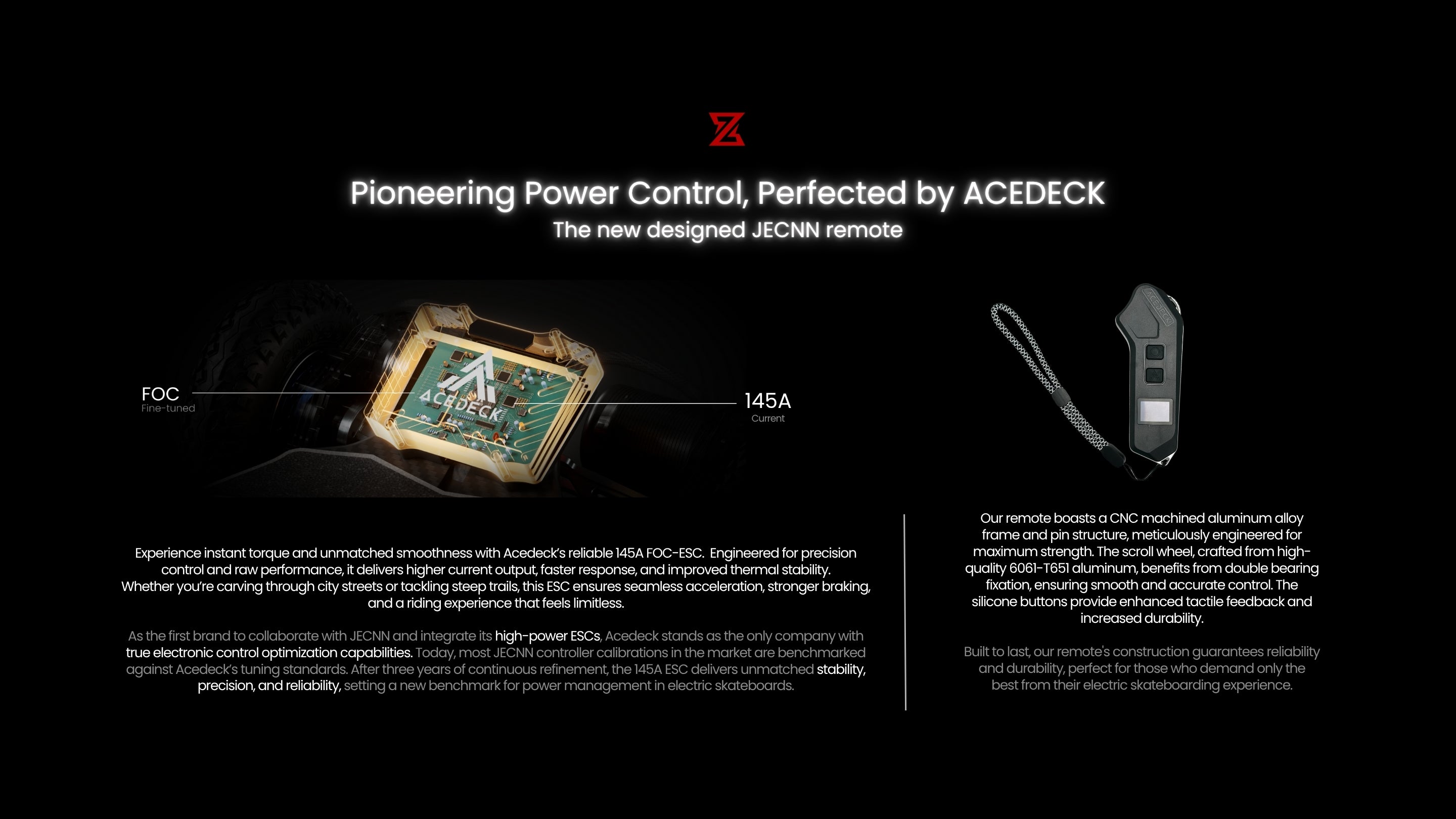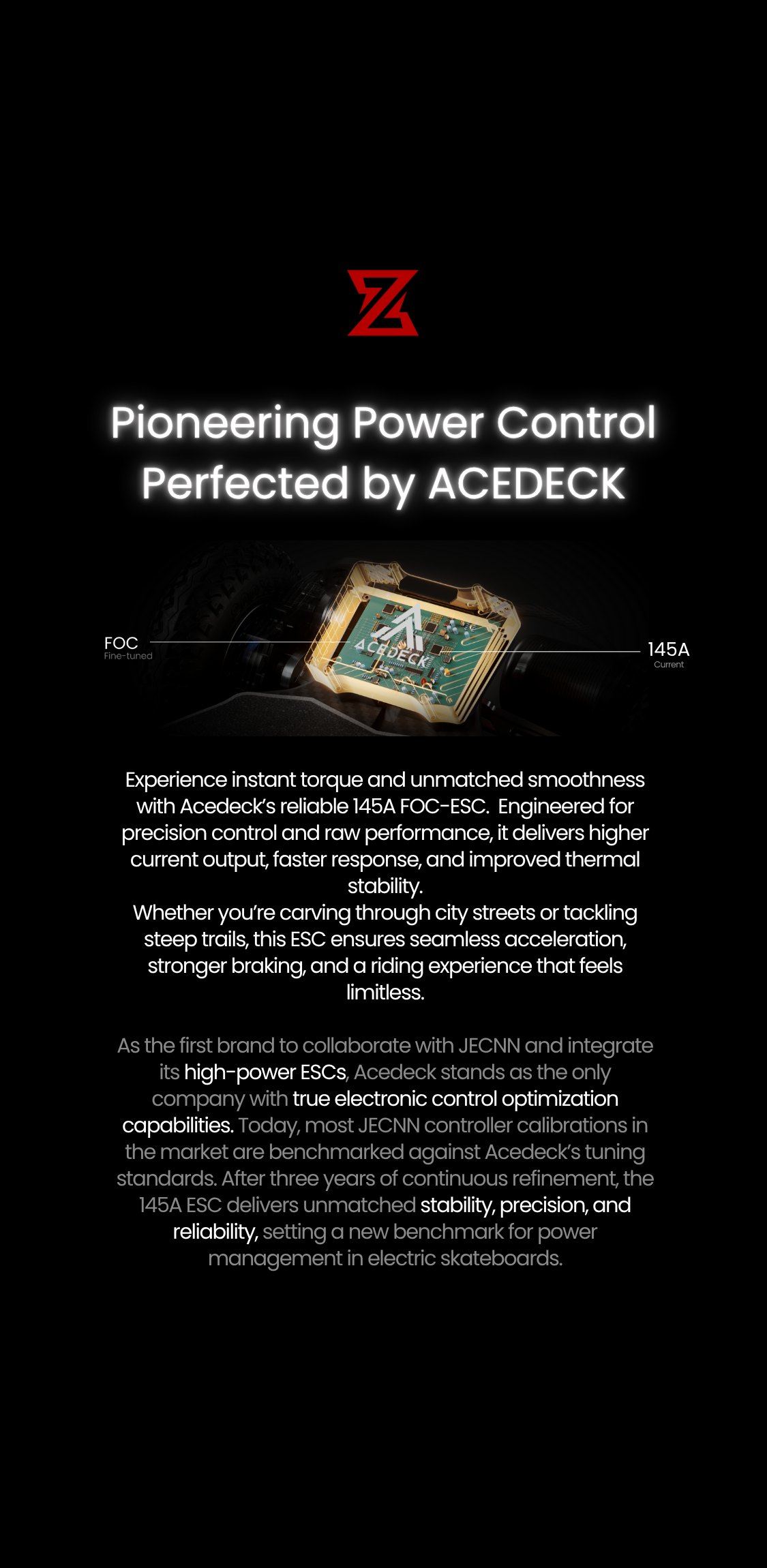 Every curve, every cut, every component of the Z1 reflects Acedeck’s relentless pursuit of perfection. From precision CNC-machined aluminum parts to the refined carbon fiber craftsmanship, every detail speaks of premium quality. It’s not just built to perform — it’s built to impress, down to the smallest screw. Because true excellence is defined by what others overlook.