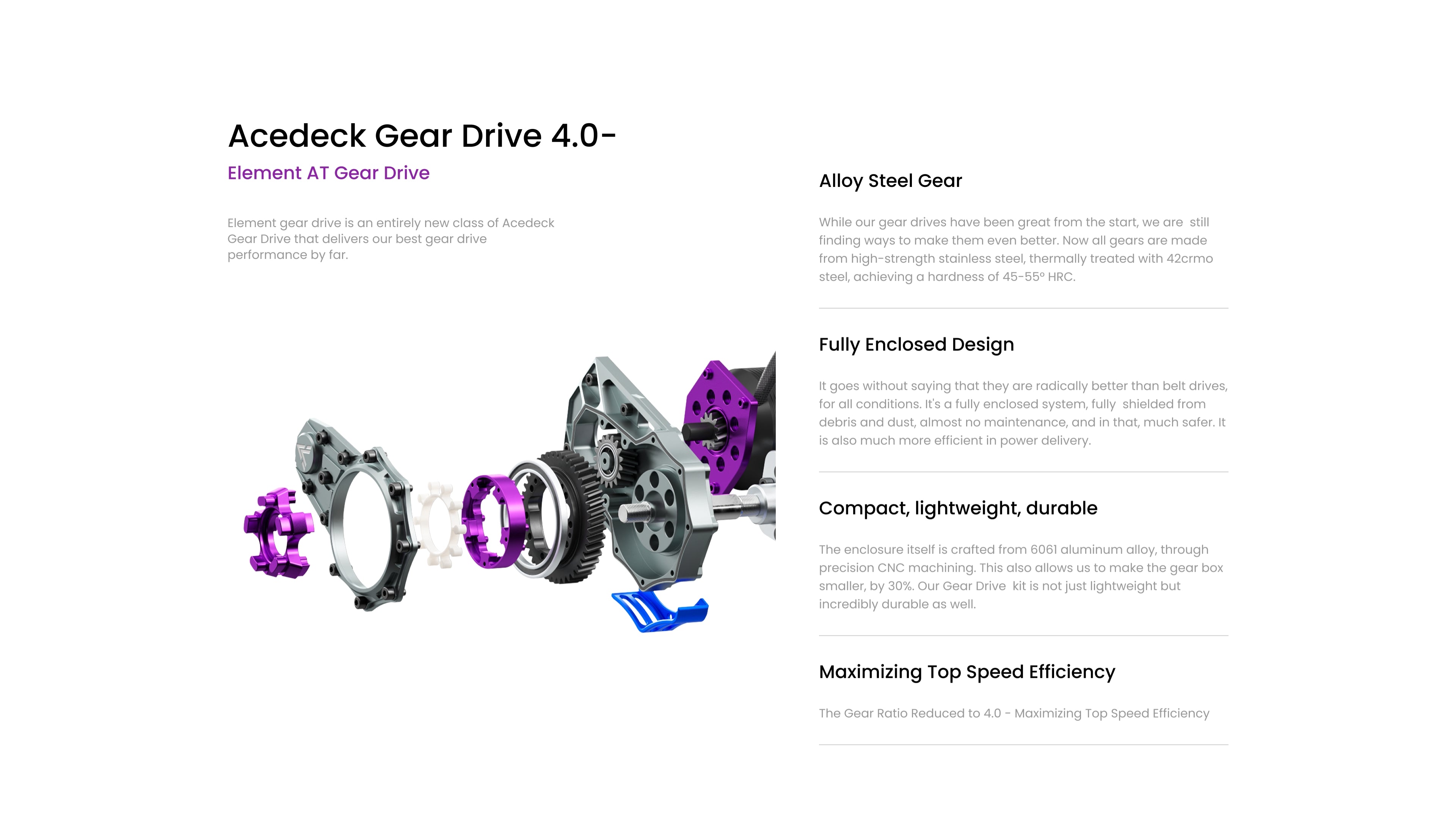 After three major evolutions, it now arrives with the latest 4th-generation full steel gear drive, offering unmatched durability, smoother power delivery, and the purest riding experience ever engineered by Acedeck.